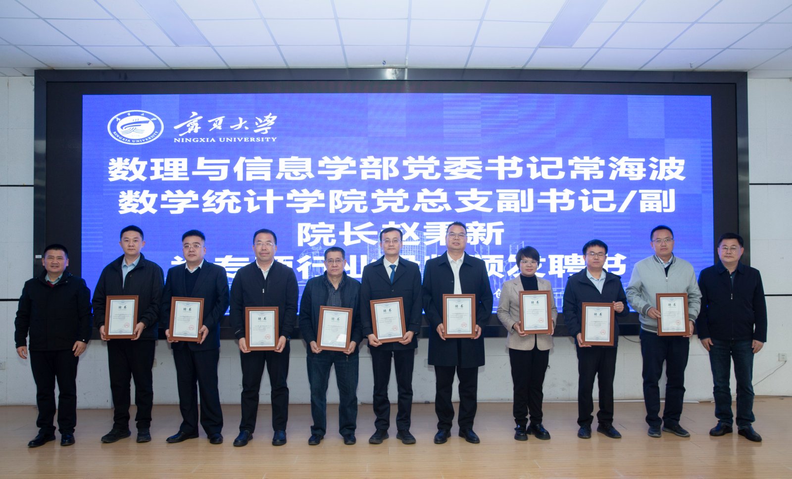 学院执行院长汪文帅和求是书院党委书记武林波分别宣读了校外行业导师、2024级基础拔尖人才培养班高层次人才班主任及2025级新生班主任聘任名单。数理与信息学部党委书记常海波、学院党总支副书记赵秉新共同为赵瑜、马晓峰、马宁等9位来自公共卫生、数字经济、物联网等领域的行业导师颁发聘书。求是书院党委副书记马彦峰、学院副院长马婧瑛共同为新任班主任颁发聘书。