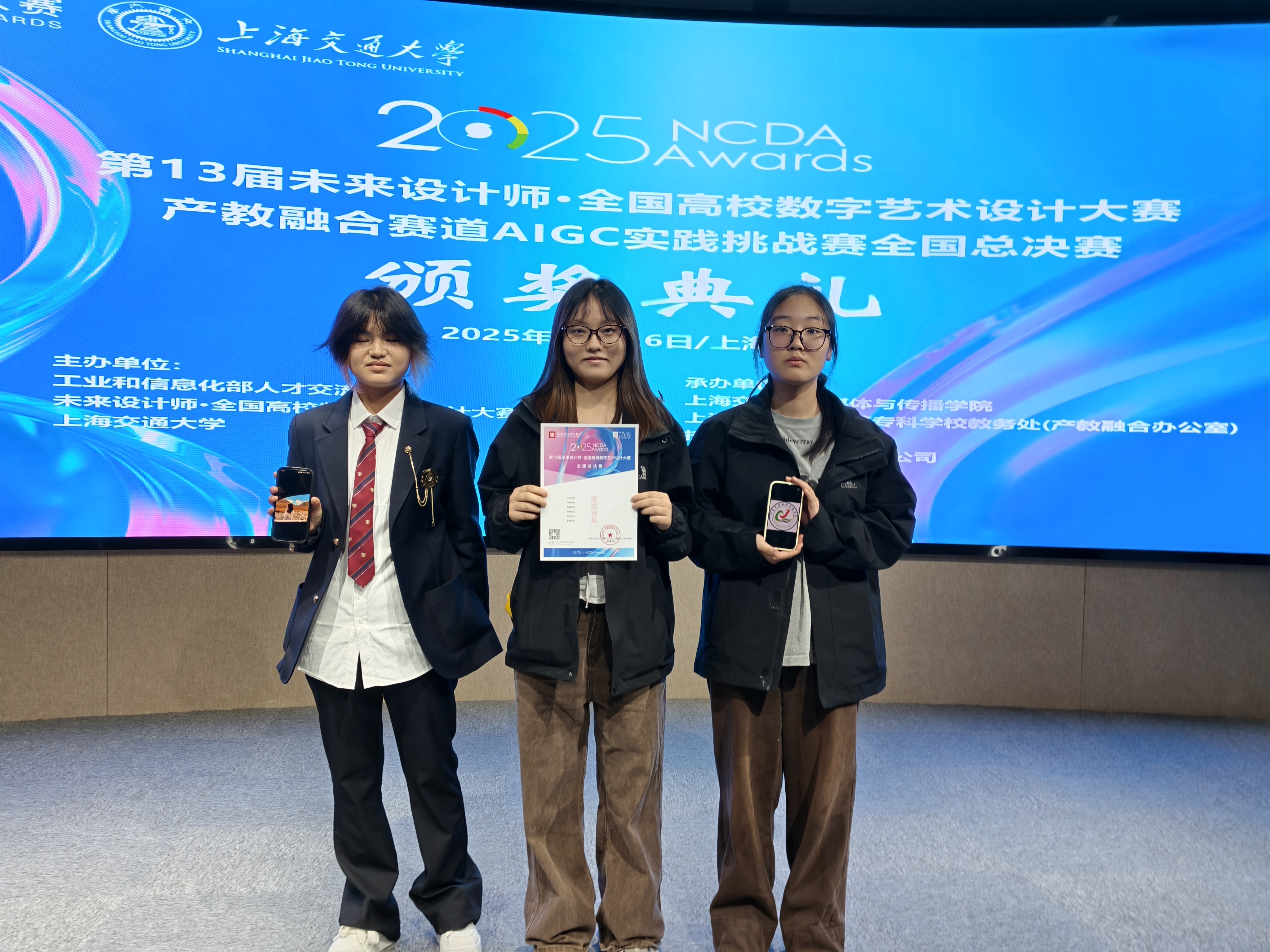 【澳门十大信誉网赌大全新闻中心讯 新闻传播学院】近日,第13届未来设计师全国高校数字艺术设计大赛产教融合赛道AIGC实践挑战赛全国总决赛在上海交通大学落幕。信誉网赌新闻传播学院学生凭借扎实的专业功底与创新的设计思维,在全国众多参赛队伍中脱颖而出,斩获全国二等奖1项、全国三等奖1项,充分展现了学院学子在AIGC领域的实践能力与创作潜力。