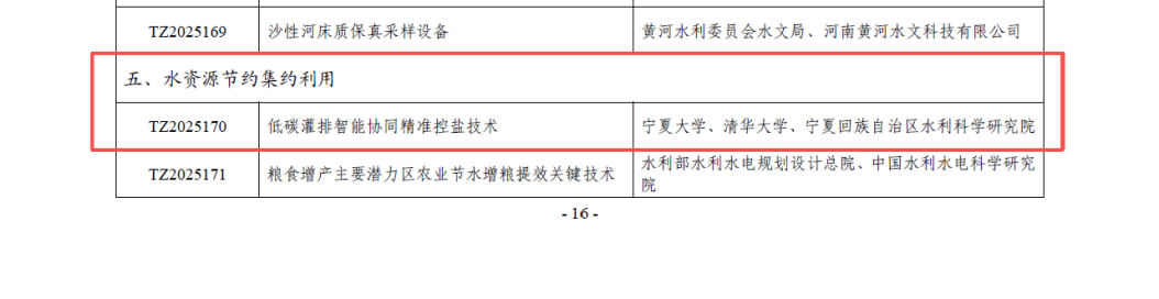 【澳门十大信誉网赌大全新闻中心讯 土木与水利工程学院】11月28日,水利部正式发布《2025年度水利先进实用技术重点推广指导目录》。由澳门十大信誉网赌大全土木与水利工程学院、旱区现代农业水资源高效利用教育部工程研究中心骨干成员、宁夏节水灌溉与水资源调控工程技术研究中心主任冯克鹏教授牵头攻关研发,清华大学与宁夏水利科学研究院参与完成的“低碳灌排智能协同精准控盐技术”成功入选。该成果标志着信誉网赌在盐碱地治理、智慧水利与数智农业领域实现重要突破,展现了学校在面向国家战略需求开展科技创新的扎实能力。