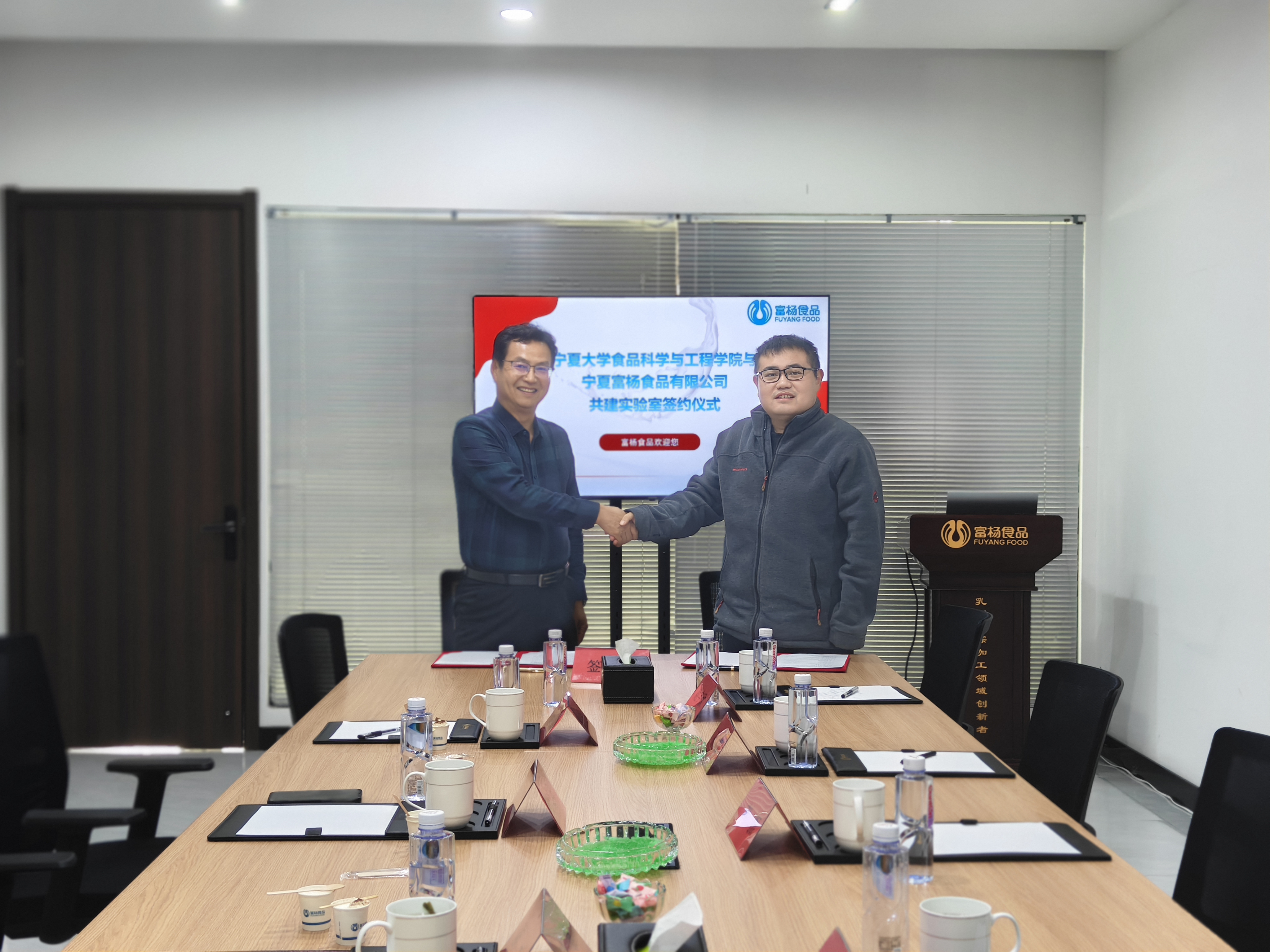 【澳门十大信誉网赌大全新闻中心讯 食品科学与工程学院】12月1日下午,食品科学与工程学院党总支书记李文华一行赴宁夏富杨食品有限公司进行访问交流,双方就产学研合作、人才培养、平台共建等方面展开深入探讨,并签署合作协议。学院教师代表剧柠教授、魏超昆博士、郭帅博士一同参与交流。