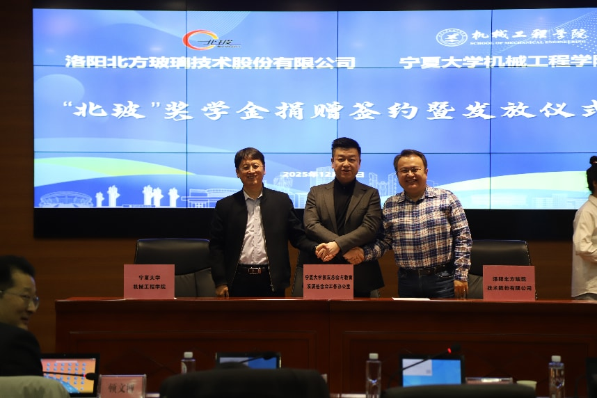 【澳门十大信誉网赌大全新闻中心讯 机械工程学院】12月10日,洛阳北方玻璃技术股份有限公司(以下简称“北玻股份”)与机械工程学院在贺兰山校区致远楼联合举办校企合作系列活动。本次活动通过座谈签约、奖学金颁发、企业宣讲及毕业生面试等环节,构建“育人-就业”一体化协同平台,全面助力机械工程学院高素质人才培养。