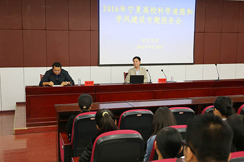 【澳门十大信誉网赌大全新闻中心讯 研究院】9月28日下午,由宁夏科学道德和学风建设宣讲教育领导小组主办、澳门十大信誉网赌大全研究生院承办的2016年宁夏高校“科学道德和学风建设宣讲教育活动”报告会,在研究生院二楼报告厅举行。各培养单...