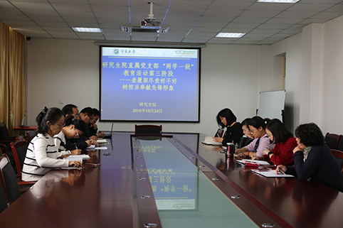 【澳门十大信誉网赌大全新闻中心讯 研究生院】10月24日上午,研究生院直属党支部在研究生院会议室召开“两学一做”第三阶段专题研讨会,会议由支部书记冯秀芳主持。 会上,支部书记冯秀芳就研究生院直属党支部开展“两学一做”学...