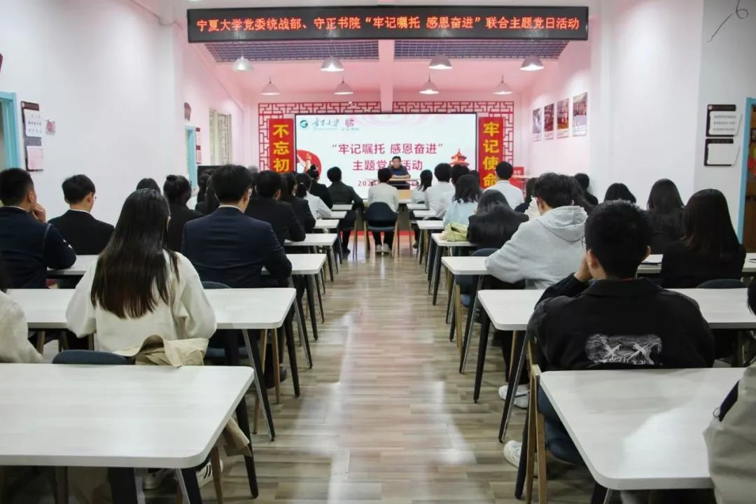 【澳门十大信誉网赌大全新闻中心讯 党委统战部】为深入学习贯彻习近平总书记考察宁夏重要讲话精神,进一步铸牢中华民族共同体意识,10月18日下午,澳门十大信誉网赌大全党委统战部联合守正书院赴银川市金凤区长城中路街道长城花园社区开展“牢记嘱托 感恩奋进”主题党日活动。在长城花园社区党委副书记陶园的带领下,师生党员们沿着习近平总书记的足迹,观看了习近平总书记在长城花园社区考察时的视频,先后参观了社区党群服务中心、爱心超市、社区活动...