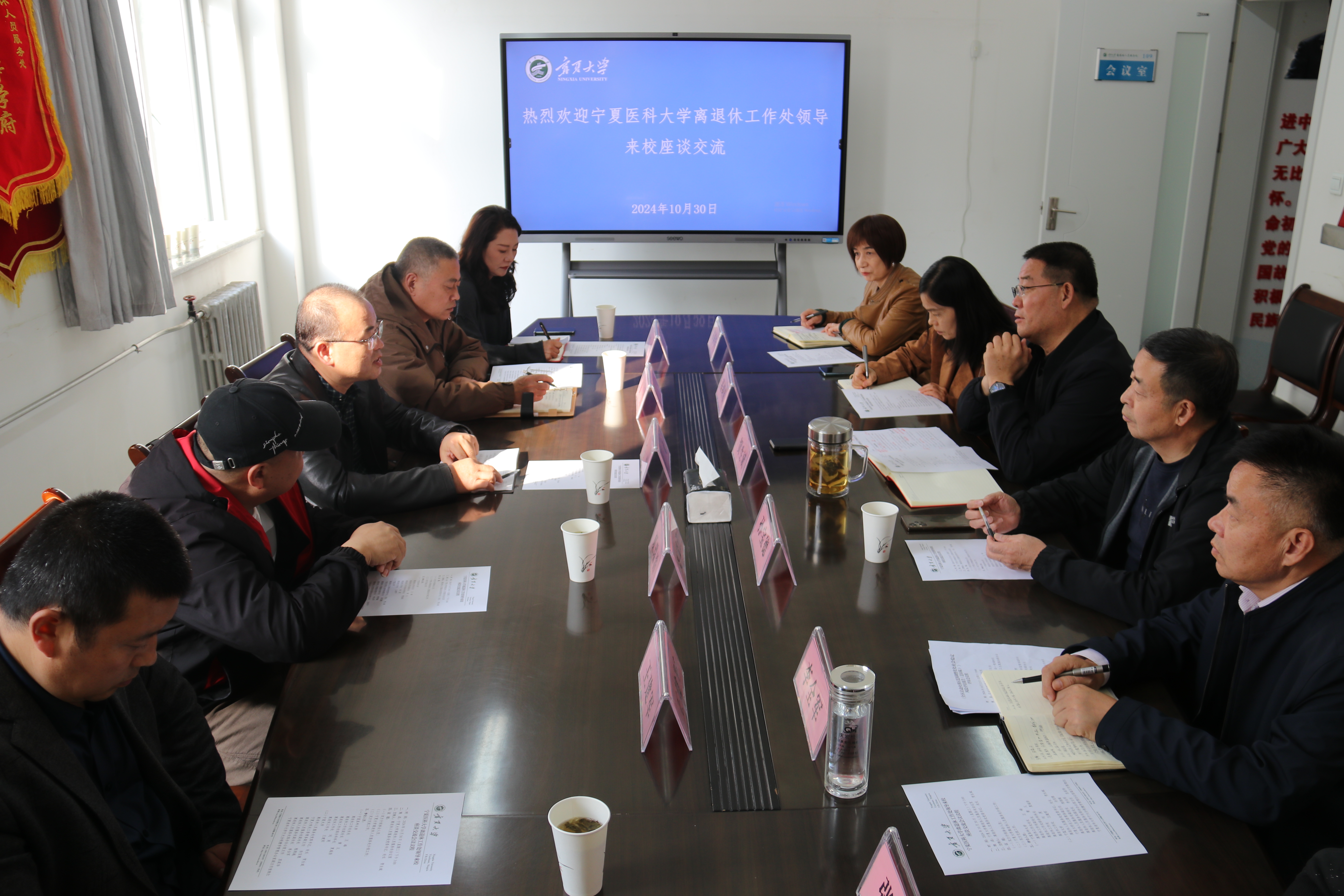【澳门十大信誉网赌大全新闻中心讯 离退休人员服务处】10月30日下午,宁夏医科大学离退休工作处处长王峰一行5人到学校离退休人员服务处调研交流离退休干部工作。处领导班子成员,关工委、老年大学分校、综合办公室等相关人员参加座谈交流。座谈会上,处党委书记、处长贺生斌对王峰一行表示欢迎,并介绍了信誉网赌离退休干部工作的总体情况及关工委、老年大学分校建设发展的经验做法。王峰对澳门十大信誉网赌大全离退休干部工作给予了充分肯定,并就宁夏医科...