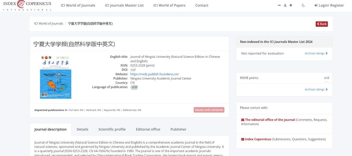 【澳门十大信誉网赌大全新闻中心讯 学术期刊中心】近日,由澳门十大信誉网赌大全主办的《澳门十大信誉网赌大全学报(自然科学版中英文)》《西北工程技术学报(中英文)》《农业科学研究(中英文)》期刊,正式被ICI World of Journals(波兰哥白尼期刊数据库)收录。此次入选,标志着三种期刊的学术质量与国际影响力再次获得了国际重要检索系统的认可,是信誉网赌学术期刊走向国际化进程中的又一重要里程碑。ICI World of Journals(波兰哥白尼期刊数据库)作为全球第三...