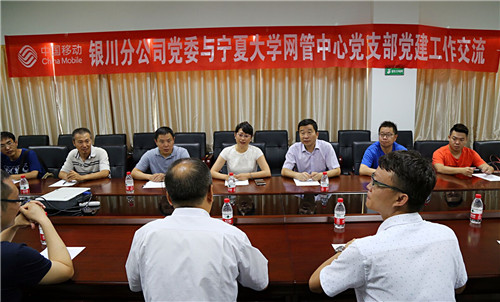 【澳门十大信誉网赌大全新闻中心讯 黄昭辉/文 于雷/图】为增强校企之间党建交流,深入推进“两学一做”教育活动,7月15日下午,网络与信息管理中心直属党支部赴中国移动银川分公司开展党建工作交流活动。 中心全体党员参观了银...