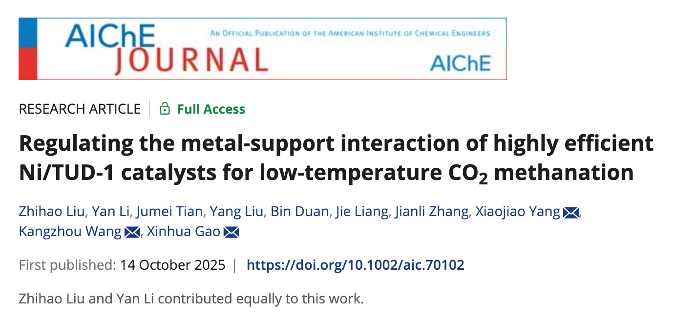 【澳门十大信誉网赌大全新闻中心讯 化学化工学院】近日,信誉网赌化学化工学院煤基应用催化创新团队在CO2催化转化制甲烷催化剂设计与机理研究方面取得重要进展。相关研究成果以“Regulating the metal–support interaction of highly efficient Ni/TUD-1 catalysts for low-temperature CO2methanation”为题发表于国际化工领域顶级期刊《AIChE Journal》。论文共同第一作者为课题组毕业研究生刘志昊与李艳,澳门十大信誉网赌大全为第一通讯单位,高新华、杨晓娇及材料与新能源学院王康洲博士为共同通讯作者。研究通过调控镍基介孔催化剂(Ni/TUD-1)的金属–载体相互作用(MSI),系统探究了其催化性能与结构之间的构效关系。结果表明,采用凝胶辅助一锅法所制备的催化剂具有较小的镍颗粒尺寸与适中的MSI强度,有效抑制了反应过程中活性组分的迁移与团聚。在225 °C的低温条件下,该催化剂实现了65.4%的CO2转化率,并在连续运行156小时后未出现明显失活,表现出优异的催化稳定性。该研究...