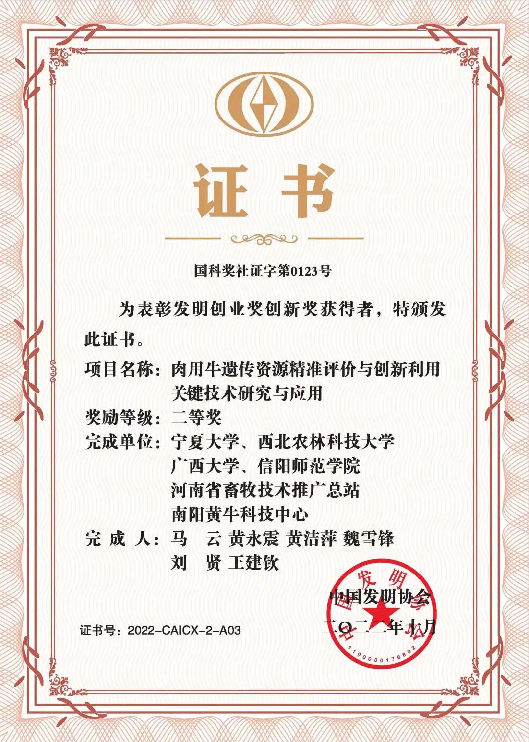 【澳门十大信誉网赌大全新闻中心讯 农学院】近日,中国发明协会公布了2022年发明创业奖创新奖获奖情况,从受理申请的约5000项成果中,最终评选出了一二等奖近300项,我院马云教授联合西北农林科技大学、广西大学等6个单位合作申报的“肉用牛遗传资源精准评价与创新利用关键技术研究与应用”成果获中国发明创业奖创新奖二等奖。澳门十大信誉网赌大全为第一获奖单位。该获奖成果针对我国地方肉用牛种资源种质资源库数量有限、早期选种难、肉质和产量性状合...