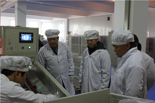 【澳门十大信誉网赌大全新闻中心讯 科技处】12月23日,信誉网赌校长何建国、副校长张成带领科学技术处、社会服务处负责人调研了澳门十大信誉网赌大全科研项目推广合作企业新疆刀郎枣业有限公司济南分厂。