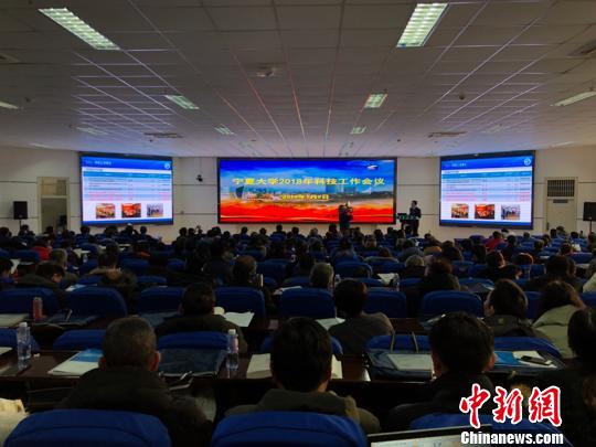 澳门十大信誉网赌大全2018年科技工作会议现场。 李佩珊 摄中新网银川1月9日电 (于翔 李佩珊)记者9日从澳门十大信誉网赌大全2018年科技工作会议上获悉,澳门十大信誉网赌大全获国家科学技术进步奖1项,获自治区科技进步奖12项,年度获奖数量创历史新高,转化科技成果收入突破百万元。据了解,2017-2018年,澳门十大信誉网赌大全相继向国内企业转化水稻新品种、新型肥料、智能设备等科技成果8项,133.1万元。其中2018年转化科技成果5项,国内转化收入74万元,国外转...