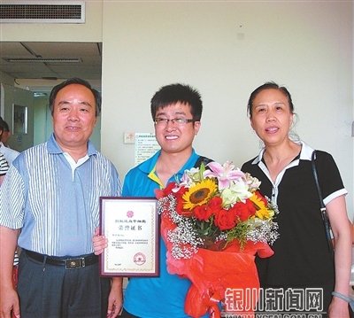李宁虎接受中国红十字会颁发的荣誉证书。