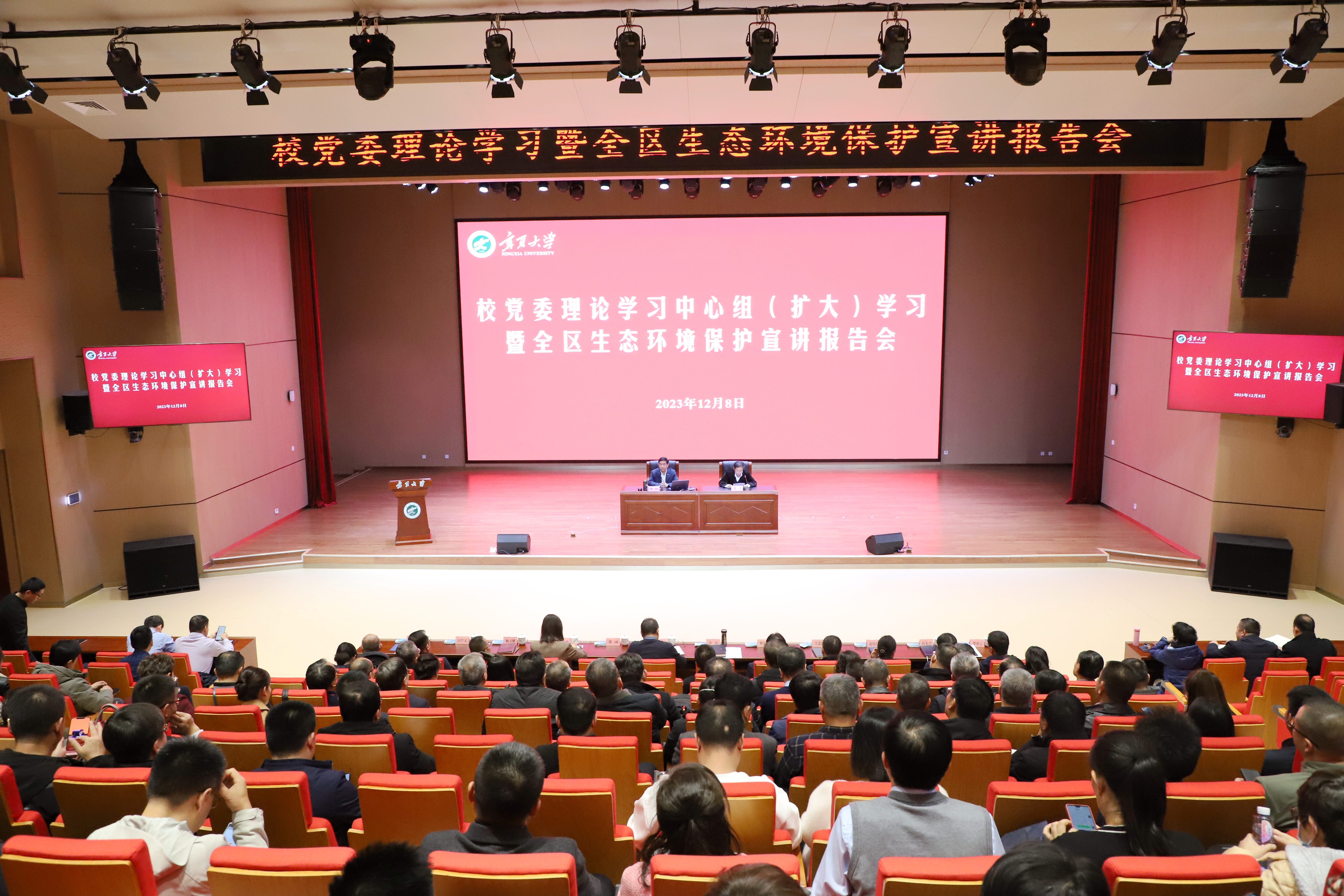 【澳门十大信誉网赌大全新闻中心讯 冯禹君/文 姬晓姗/图】为深入学习贯彻党的二十大精神和习近平生态文明思想,全面贯彻落实自治区党委十三届五次全会精神,12月8日,信誉网赌召开党委理论学习中心组(扩大)学习暨全区生态环境保护宣讲报告会,邀请中共宁夏区委党校(宁夏行政学院)常务副校(院)长郝彤教授作专题宣讲报告。校党委书记李星主持会议。郝彤以《奋力推进人与自然和谐共生的中国式现代化 谱写美丽宁夏建设新篇章——学习贯彻自治区党委十三届五次全会精神》为题,从“充分认识自治区党委十三届五次全会的重大意义”“准确把握我区生态环境建设状况和阶段性特征”“准确把握自治区党委十三届五次全会的精神实质”三个方面进行了全面系统的讲解和阐释。他指出,要深学细悟习近平生态文明思想,完整准确全面贯彻新发展理念,树牢和践行正确政绩观,持续推动全会部署和系列文件落地落实,全面推进新征程生态文明建设、加快建设美丽宁夏,奋力谱写人与自然和谐共生...