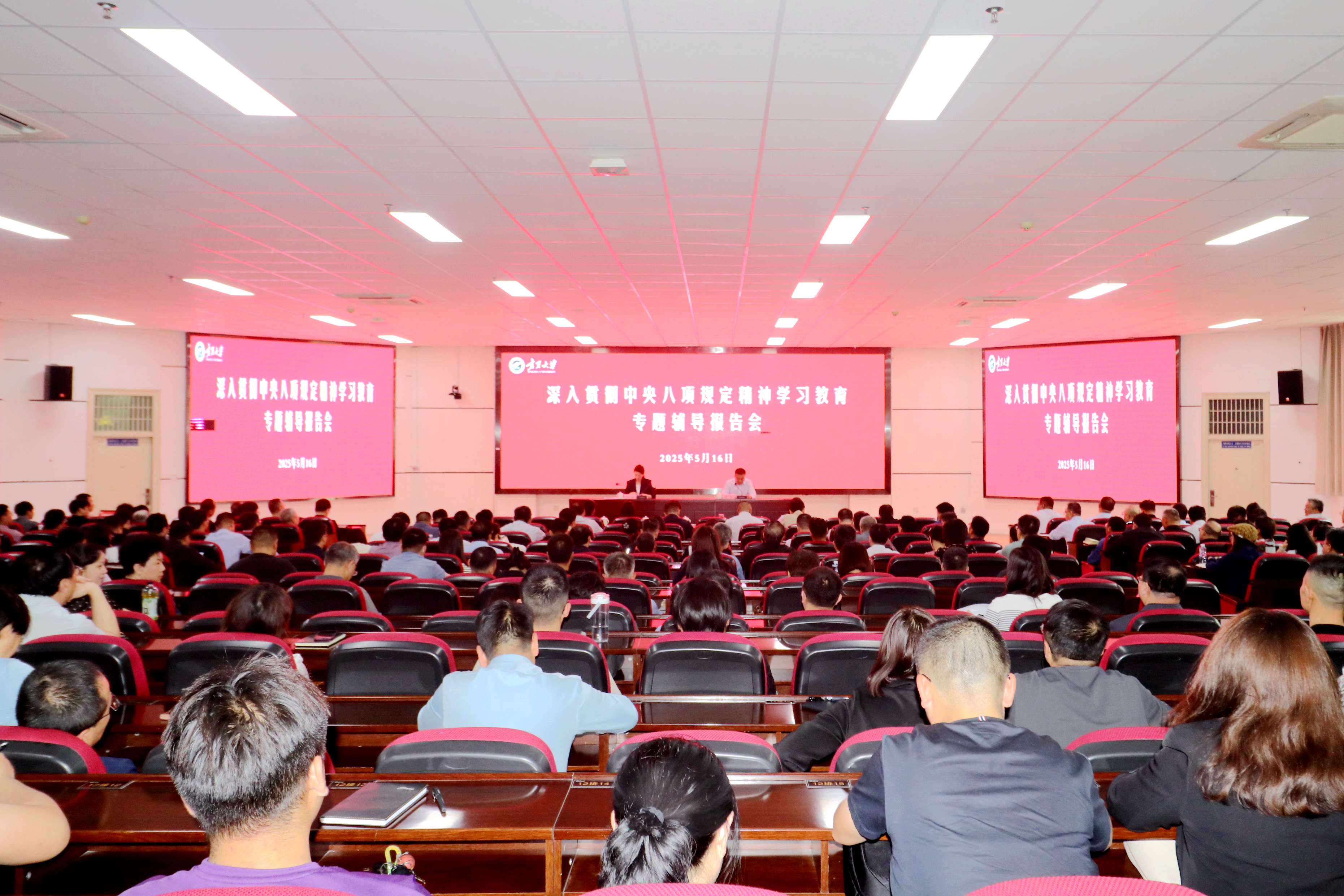 【澳门十大信誉网赌大全新闻中心讯 学生记者:宋丽群/文 张景/图】为扎实开展深入贯彻中央八项规定精神学习教育,引导党员干部准确把握中央八项规定精神的主旨要义和实践要求,5月16日,信誉网赌在贺兰山校区文荟楼报告厅举行深入贯彻中央八项规定精神学习教育专题辅导报告会,邀请自治区纪委监委第二监督检查室副主任马洁同志作专题辅导。全体在校校领导参加报告会,校党委副书记张桓主持会议。报告会深入学习习近平总书记关于加强党的作风建设的重要论述和中央八项规定精神的核心要义,结合典型案例深入浅出解读了违反中央八项规定精神的具体表现。报告指出,要扎实开展深入贯彻中央八项规定精神学习教育,以抓铁有痕、踏石留印的钉钉子精神,纠“四风”、改作风、树新风,持续加固中央八项规定堤坝,以优良作风为奋进新征程保驾护航。张桓在主持报告会时强调,深入贯彻中央八项规定精神学习教育是当前全党政治生活中的一件大事,各单位要在学习上再深化、不断夯实思想根基...