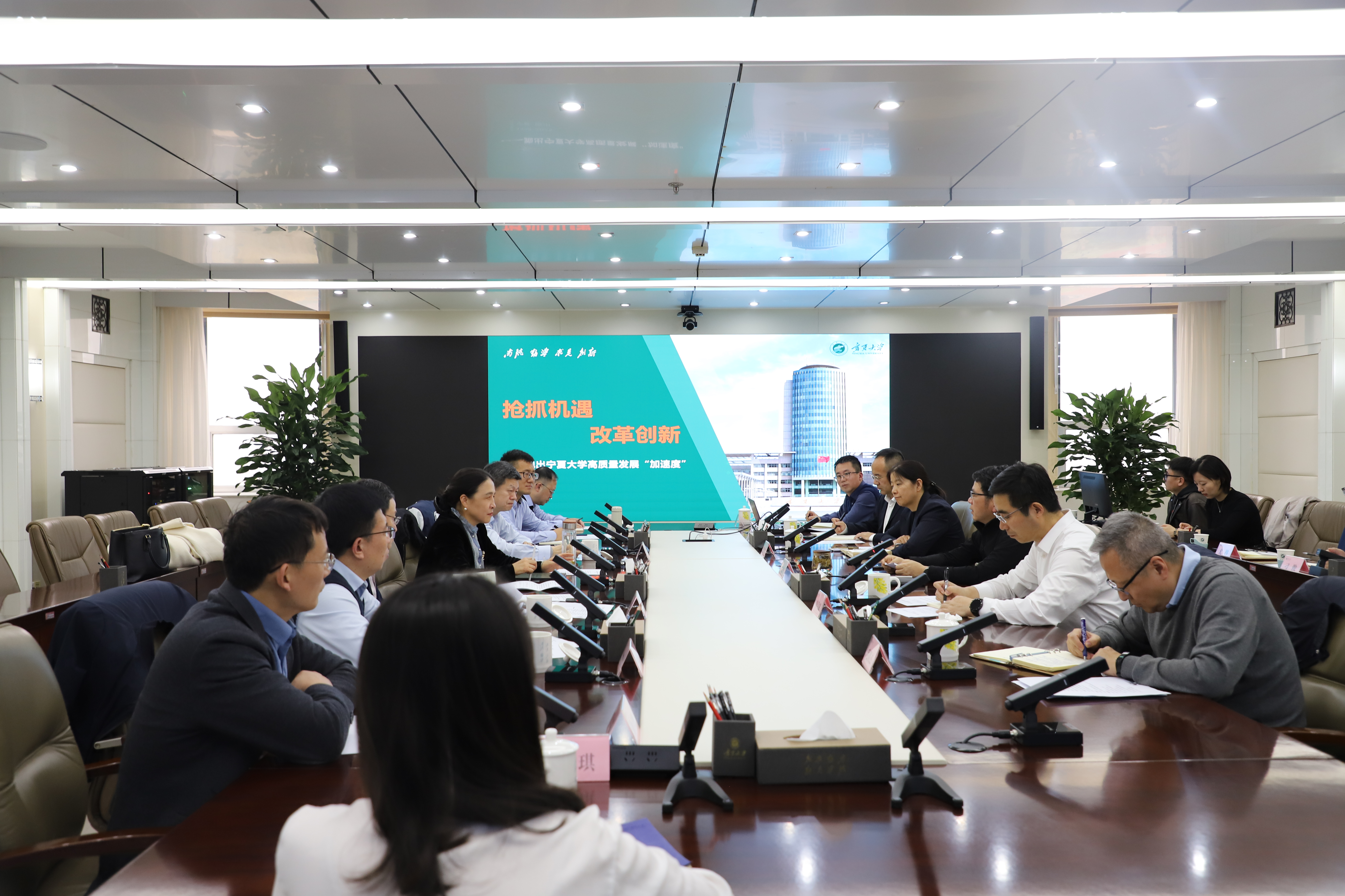 【澳门十大信誉网赌大全新闻中心讯 王文娣/文、图】10月30日下午,江苏大学党委书记李洪波,党委常委、副校长邹小波和任旭东一行来校调研交流并召开座谈会。会前,校党委书记王宏伟在德勤楼会见了李洪波一行。校党委副书记、校长彭志科,校党委常委、副校长黄河参加座谈会。彭志科对李洪波一行的来访表示欢迎,并从澳门十大信誉网赌大全办学历程、人才培养、学科建设、科技创新、综合改革等方面介绍了学校的总体情况。与会人员围绕学科发展、内部治理、人事管理、学生工作等方面作了讨论交流。李洪波还登上德勤楼天台了解学校发展规划情况,并前往勤学书院调研了解“一站式”学生服务社区的建设管理工作。江苏大学党委办公室、学科建设与规划发展处、人事处、学生处相关负责人,信誉网赌对外合作交流处、发展规划与学科建设处、人力资源部(党委教师工作部)、党委学生工作部(学生处)相关负责人参加座谈。(责任编辑:李瑾