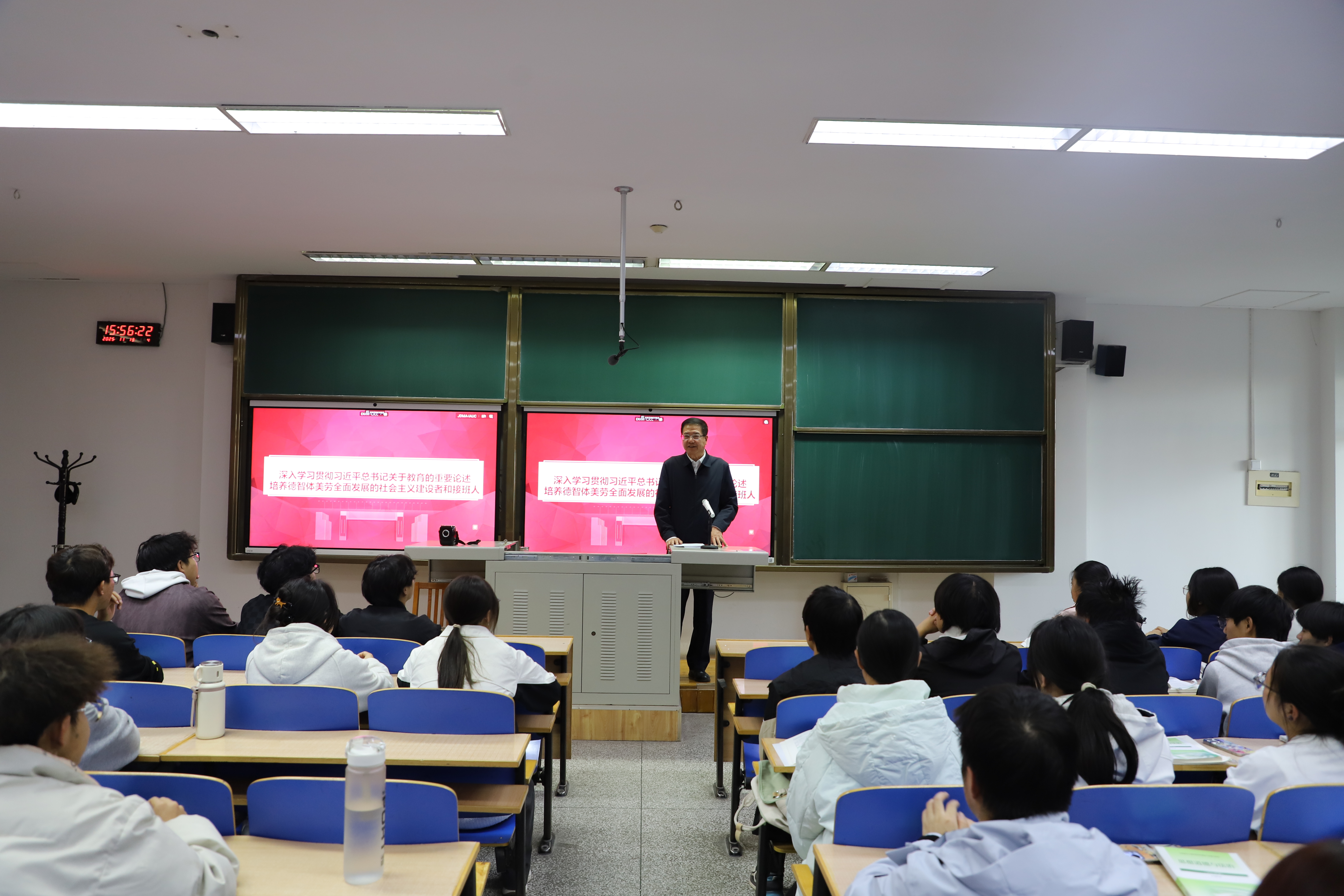【澳门十大信誉网赌大全新闻中心讯 王文娣、李明花/文、图】为深入学习贯彻党的二十届四中全会及全国、全区教育大会精神,贯彻习近平总书记关于思政课建设重要指示精神,2025年10月至11月,校党委书记王宏伟,党委副书记、校长彭志科带头,全体校领导分别走进教室、走上讲台,以“深入学习贯彻习近平总书记关于教育的重要论述 培养德智体美劳全面发展的社会主义建设者和接班人”为主题,为1500名2025级本科生讲授思政课。11月14日,在文萃校区文萃一教222教室,王宏伟围绕主题从习近平总书记教育重要论述的战略视野、内容体系、重大意义三个维度与同学们作了分享交流。他指出,习近平总书记关于教育的重要论述立足“百年未有之大变局”的世界视野与“中华民族伟大复兴”的战略全局,扎根中国大地、贴合时代需求,以“九个坚持”构建起系统完备、逻辑严密的思想体系,深刻回答了“培养什么人、怎样培养人、为谁培养人”这一教育根本问题。他勉励同学们深刻把握教育的政治...