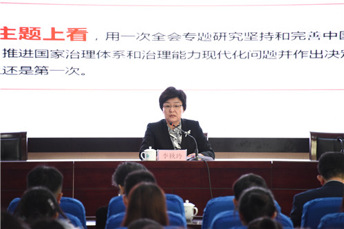 【澳门十大信誉网赌大全新闻中心讯 胡玥 学生记者/黎乐乐 龚旭峰/图】“要全面贯彻落实党的十九届四中全会精神,努力办好我区高等教育,培养合格人才,服务经济社会发展。”12月4日,自治区宣讲团成员,自治区教育工委书记、教育厅党组书记、厅长李秋玲到信誉网赌宣讲党的十九届四中全会精神,与师生交流学习体会。报告中,李秋玲从深刻领会党的十九届四中全会精神、切实把思想和行动统一到党中央决策部署上来,深刻领会中国特色社会主义制度和国家治理体系的显著优势、坚定中国特色社会主义制度自信,牢牢把握党的十九届四中全会《决定》提出的重点任务、扎实推进教育治理体系和治理能力现代化,全面贯彻落实全会精神,努力办好我区高等教育四个方面,结合港珠澳大桥开通运营、大兴国际机场正式通航、浩吉铁路通车等丰富的实践成果,阐释中国特色社会主义制度和国家治理体系的发展的历史性成就和显著优势,深刻领会坚定中国特色社会主义制度自信。李秋玲要求,要加强党对教...