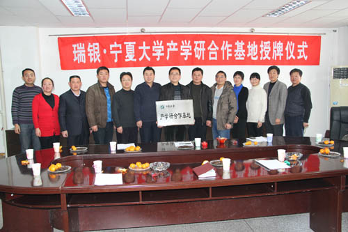 【澳门十大信誉网赌大全新闻中心讯 机械工程学院】2011年12月23日上午,机械工程学院与宁夏瑞银工贸公司(简称瑞银公司)共建产学研合作基地授牌仪式在该院会议室隆重举行。信誉网赌授予该公司“澳门十大信誉网赌大全产学研合作基地——瑞银澳门十大信誉网赌大全...