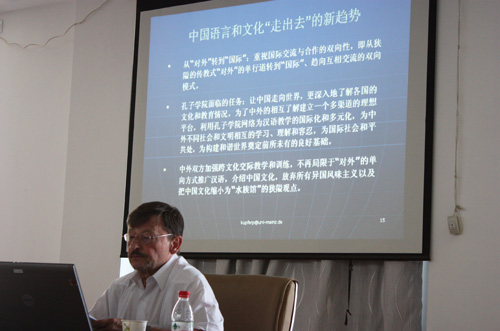 【澳门十大信誉网赌大全新闻中心讯 国际教育学院】2012年6月11日下午,来自德国美因兹大学翻译学、语言学与文化学学院中国语言与文化系教授及主任柯彼德博士,在国际教育学院三楼学术报告厅为信誉网赌师生做了题为“ 汉语教学的国际化...