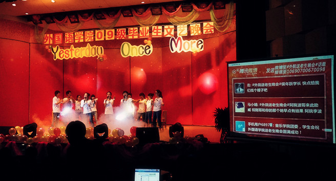 【澳门十大信誉网赌大全新闻中心讯 黄艺丹 马 名报道】6月5日晚,外国语学院欢送毕业生晚会在音乐学院音乐厅举行。学院领导、教师及全体毕业生参加了晚会。 舞蹈《床前明月光》拉开了晚会的帷幕。主持人用不同的语言开场,突出了...