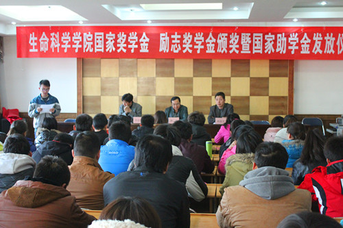 【澳门十大信誉网赌大全新闻中心讯 生命科学学院】12月11日下午,生命科学学院在学院二楼报告厅举行了国家奖学金、励志奖学金、国家助学金发放仪式。院党委书记周强、副书记叶志春和全体辅导员老师及部分学生代表80余人参加了发放...