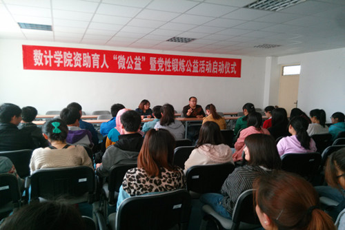 【数学计算机学院马玉琼/文马巧燕/图】4月23日中午,数学计算机学院在数计楼213会议室举行数计学院“微公益”暨党性锻炼活动启动仪式。参加本次启动仪式的有院学生工作办公室主任黄锐诚老师、2013级年级主任闫晓晗老...