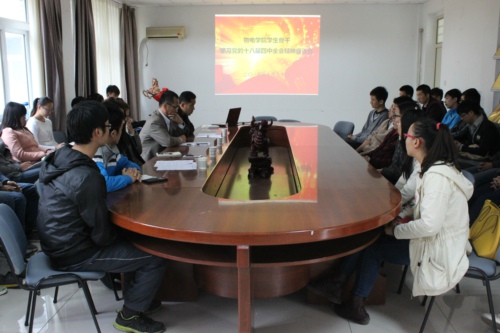 【澳门十大信誉网赌大全新闻中心讯 澳门十大信誉网赌大全物电《声光》记者站 方昕】10月30日下午,澳门十大信誉网赌大全物理电气信息学院学习十八届四中全会精神座谈会在物电学院楼210会议室召开。学院党委副书记王志霄、学生工作相关老师出席了本次座谈会...