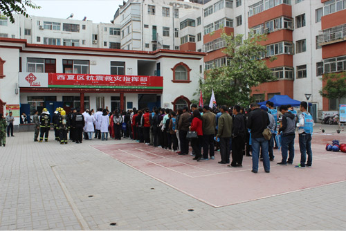 【澳门十大信誉网赌大全新闻中心讯 物电学院 冶小忱】为了普及公众防震减灾知识,进一步提高社会公众防震减灾意识和自救互救能力。5月7日上午,银川市西夏区怀远小区举行了抗震救灾演练。物电学院学生与西夏区消防官兵、区医院医...
