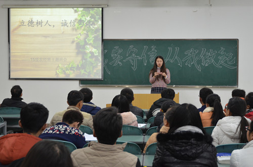 【澳门十大信誉网赌大全新闻中心讯 经济管理学院传媒中心讯 丁晓燕 李聪聪/文】为了加强同学们的诚信意识,培养德才兼备的优秀人才。12月16日,经济管理学院2015级主题班会在各班顺利开展。 这次主题班会围绕“诚实做人,磊落行...
