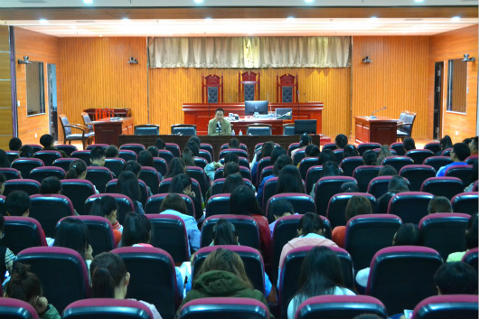 【澳门十大信誉网赌大全新闻中心讯政法学院】10月23日晚,政法学院邀请校保卫处张俊伟老师于澳门十大信誉网赌大全贺兰山校区文科楼模拟法庭,为政法学院2016级全体新生作了题为“校园安全知识”的专题讲座。 张老师从宁大校园报警电话说起,并...