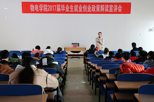 【澳门十大信誉网赌大全新闻中心讯 物理与电子电气工程学院】为帮助同学们进行准确的自我定位,合理规划就业创业之路。12月1日下午,物理与电子电气工程学院于澳门十大信誉网赌大全怀远校区一教321教室召开2017届毕业生就业创业政策解读宣讲会...