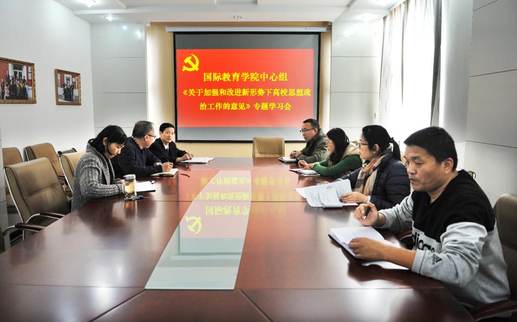 【澳门十大信誉网赌大全新闻中心讯 国际教育学院】3月8日上午,国际教育学院中心组召开《关于加强和改进新形势下高校思想政治工作的意见》专题学习会,学院直属党支部书记黄二宁,院长王辉、副书记马霞、副院长马军及相关人员参加...