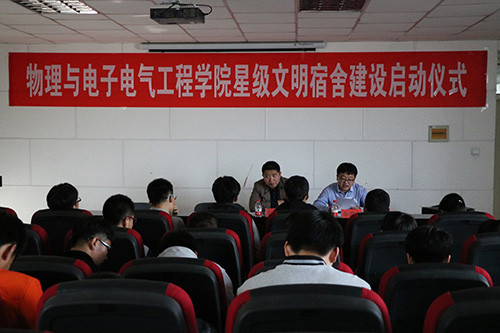 【澳门十大信誉网赌大全新闻中心讯 物理与电子电气工程学院】3月22日,物理与电子电气工程学院举行星级文明宿舍建设启动仪式。 据了解,本次星级文明宿舍建设及评选活动将围绕宿舍卫生、宿舍文化、宿舍学风、文明修养及安全秩序...