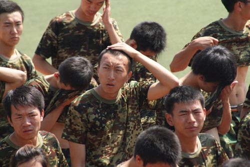 烈日当头,同学们一动不动的站着。是什么让他们如此执着?是命令,是坚强,是一颗不低头的心。 “立正”、 “向右看齐”、“向前对正”等一系列口令声萦绕耳边,这些军中嘹亮的口号声组成了今年酷热的七月中最美丽的音...