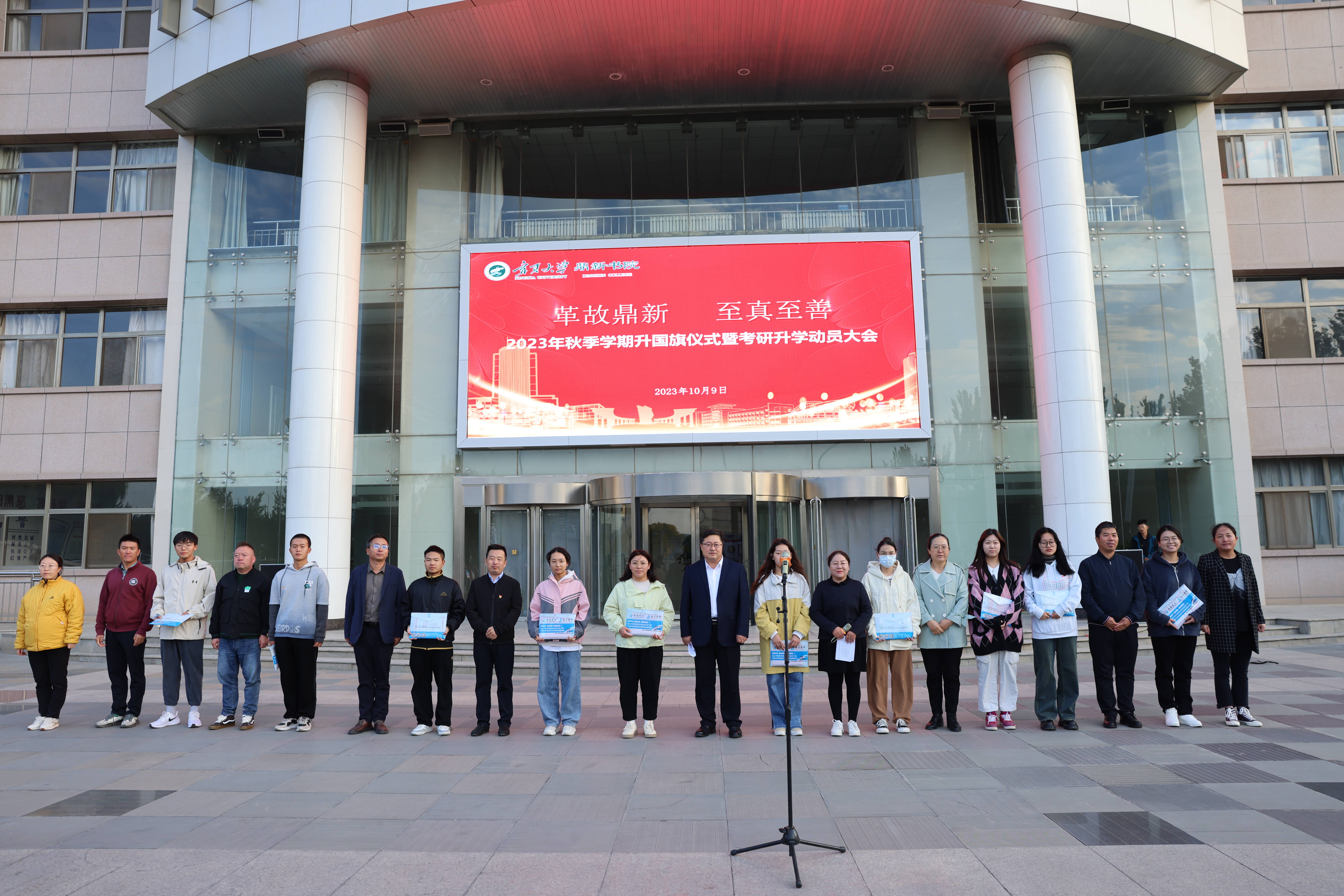 【澳门十大信誉网赌大全新闻中心讯 鼎新书院】10月9日清晨,鼎新书院在贺兰山校区德勤楼前举行2023年秋季学期升国旗仪式暨考研升学动员大会,书院班子成员、辅导员和全体在校本科生、研究生参加升旗仪式,书院党委副书记马丽蓉主持大会。迎着朝阳,由来自机械工程学院、化学化工学院、材料与新能源学院不同年级、不同专业学生代表组成的国旗护卫队,迈着铿锵有力的步伐护送着五星红旗走向升旗台。全体师生面向国旗行注目礼,随着雄壮的国歌...