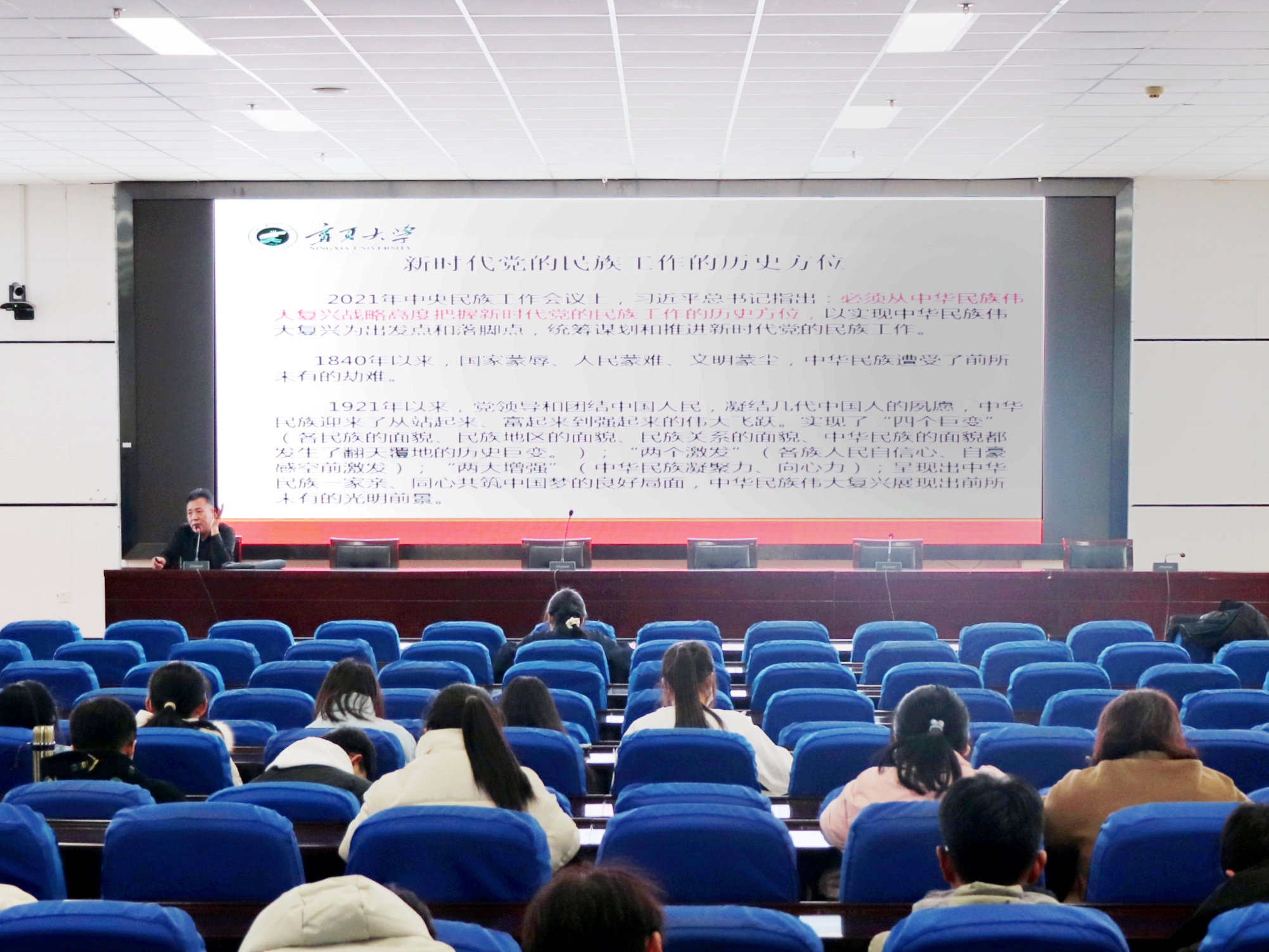 【澳门十大信誉网赌大全新闻中心讯 求是书院】为进一步做好书院民族团结教育工作,引导书院学生铸牢中华民族共同体意识,12月13日下午,求是书院在贺兰山校区文荟楼东侧一楼报告厅开展以“把握历史方位 铸牢中华民族共同体意识”为主题的讲座。此次讲座特别邀请到民族与历史学院沙彦奋老师担任主讲,求是书院2023级同学参加讲座。沙彦奋从新时代党的民族工作的历史方位、铸牢中华民族共同体意识的科学内涵及如何铸牢中华民族共同体意识三个...