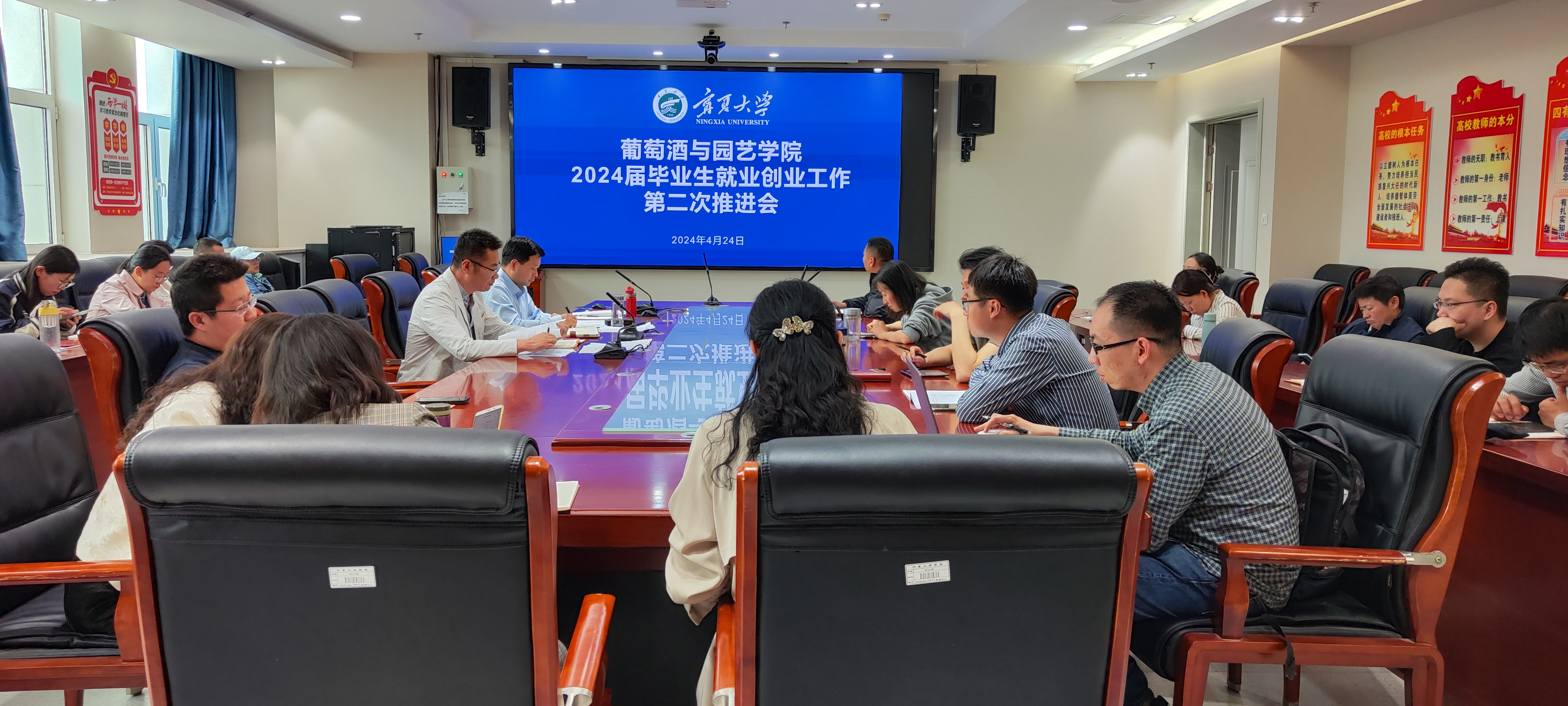 【澳门十大信誉网赌大全新闻中心讯 葡萄酒与园艺学院】为全面落实党中央、国务院对高校毕业生就业创业工作的决策部署和《澳门十大信誉网赌大全2024届毕业生就业创业工作方案》的通知要求,多措并举促进2024届毕业生高质量充分就业。4月24日,我院召开2024届毕业生就业创业工作推进会。学院全体教师参加了会议,会议由学院党总支书记苏宇静主持。苏宇静强调,我院将从“精准施策”,逐级压实工作责任;“精准指导”,构建高质量就业指导服务体系;“精准...