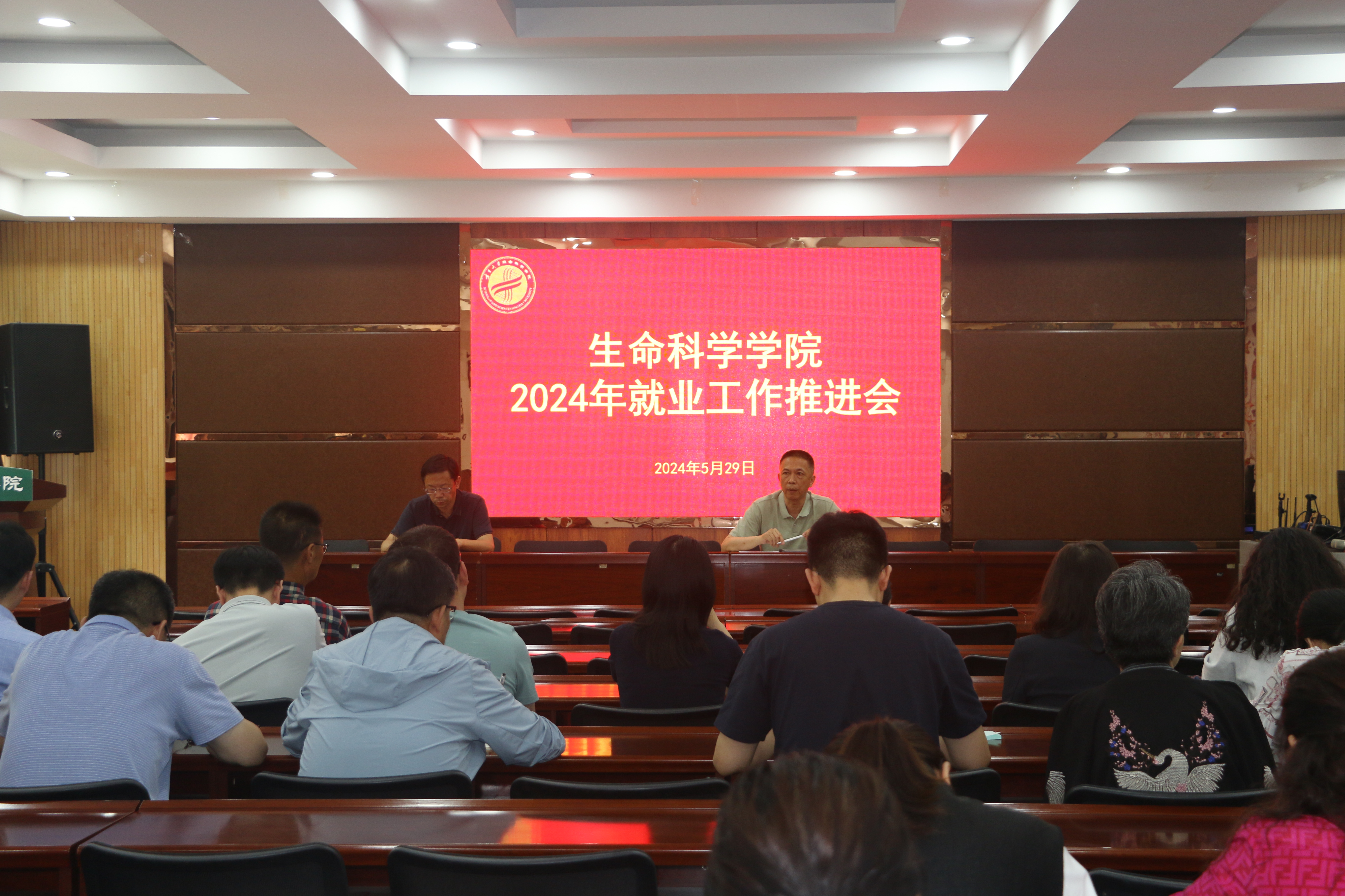 【澳门十大信誉网赌大全新闻中心讯 生命科学学院】5月29日,生命科学学院在知本楼二楼报告厅召开2024年就业工作推进会,全体教职工参加会议,会议由院长苏建宇主持。会上,苏建宇分析了2024年就业形势,汇报了学院今年初次就业率情况,并就高效推进就业工作进行部署安排,他强调,为进一步做好学院学生就业帮扶工作、层层压实责任,学院领导、本科毕业班班主任和研究生导师等,要切实担当作为,引导学生树立正确的就业观、主动关心毕业生就...