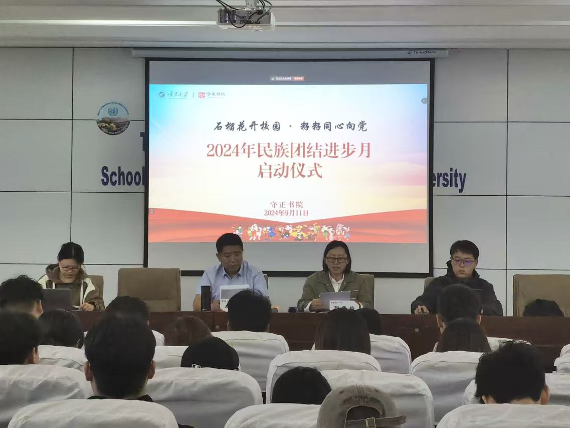 【澳门十大信誉网赌大全新闻中心讯 守正书院】9月12日下午,守正书院在怀远校区曾宪梓楼三楼报告厅举行2024年民族团结进步月启动仪式。书院党委副书记赵永军、团委书记陶雪梅、团学骨干、“小石榴”宣讲团成员、各团支部书记参加会议。会议由陶雪梅主持。会上,陶雪梅宣读了《澳门十大信誉网赌大全守正书院2024年民族团结进步月活动实施方案》,并就各项活动推进情况进行了安排。党委副书记赵永军作动员讲话。他强调,举办民族团结进步月系列活动,是书...
