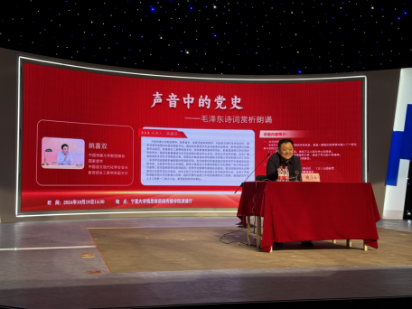 【澳门十大信誉网赌大全新闻中心讯 哲学与艺术学部】10月19日下午,国家督学、中国传媒大学博士生导师姚喜双教授应邀到新闻传播学院进行讲学。讲座在慎思楼演播厅举行,新闻传播学院党总支书记苏洁主持,哲学与艺术学部、学院教师和学生代表共100余人聆听了这场精彩的学术盛宴。姚喜双以“声音中的党史——毛泽东诗词朗诵”为题,旨在通过毛泽东的经典诗词,引领师生深入感受党的光辉历程与深厚文化底蕴。他精选了《七律·长征》等五首毛泽东的经典诗词作为示范,邀请现场学生上台朗读,并亲自进行示范指导。在他的悉心指导下,学生们不仅深刻领悟了这些诗词所蕴含的情感与文化内涵,还显著提升了自身的朗读水平。此次讲学活动不仅是一次学术盛宴,更是一次心灵的洗礼。姚喜双教授以其深厚的朗读功底、高超的朗诵艺术、热烈的爱国之情,不仅引领大家品味并了解了朗读艺术,提高了师生们的语言表达能力,还对大家进行了爱国主义教育,厚植了师生的家国情怀。(责任编辑:王...