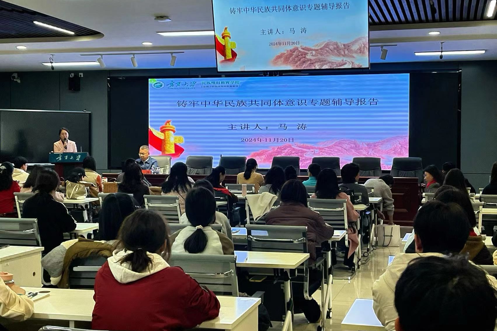 【澳门十大信誉网赌大全新闻中心讯 民族预科教育学院】为深入学习贯彻习近平总书记关于加强和改进民族工作的重要思想,教育引导广大师生不断增强“五个认同”,牢固树立“四个与共”的共同体理念,铸牢中华民族共同体意识,11月20日下午,民族预科教育学院邀请银川市民委副主任马涛同志为师生作专题辅导报告。报告以《做担当民族复兴大任的时代新人》为题,从“为什么要铸牢中华民族共同体意识”“青年朋友需要了解掌握的基本常识”以及“推动铸牢工作的具体做法”三个方面,结合历史和现实,引导广大师生深入学习习近平总书记关于加强和改进民族工作的重要思想和视察宁夏重要讲话指示批示精神,深入了解我国统一多民族国家的基本国情、中国特色解决民族问题的正确道路和各民族交往交流交融的生动实践,深刻认识铸牢中华民族共同体意识是新时代党的民族工作的主线,也是民族地区各项工作的主线。讲座既有理论高度,又有实践深度,增强了师生对民族团结的政治认同和情感认...