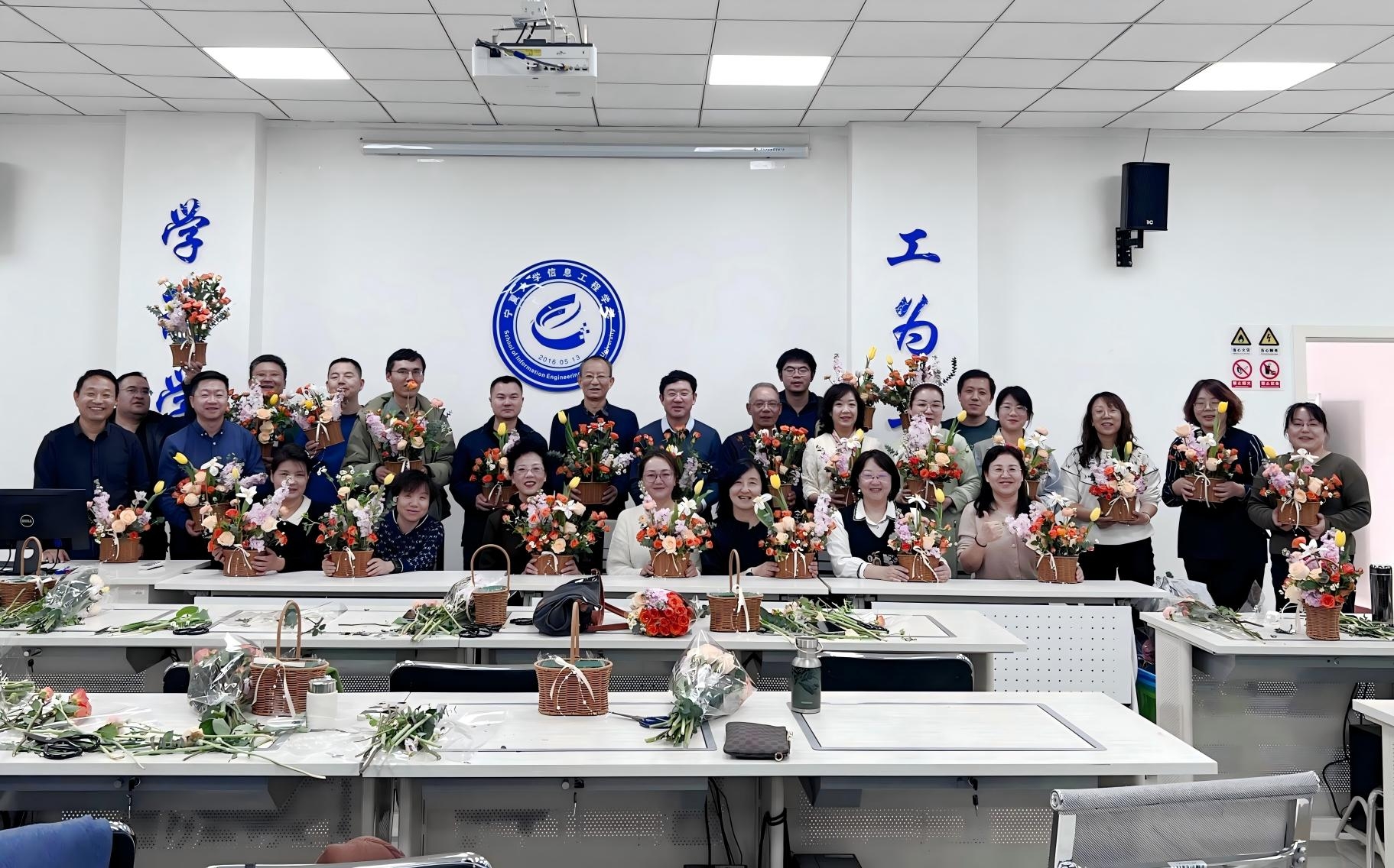 【澳门十大信誉网赌大全新闻中心讯 信息工程学院】为庆祝第115个“三八”国际劳动妇女节,丰富教职工精神文化生活,3月7日下午,信息工程学院分工会精心策划的“指尖生春色,匠心绽芳华”主题插花沙龙活动在学院举办。全院教师齐聚一堂,以花为媒、以艺会友,在花香与欢笑中共度春日美好时光。活动特邀专业花艺师现场指导,从花卉品类、色彩美学到空间造型进行系统讲解,并演示了现代插花技法。老师们化身“花艺设计师”,在郁金香的馥郁、...