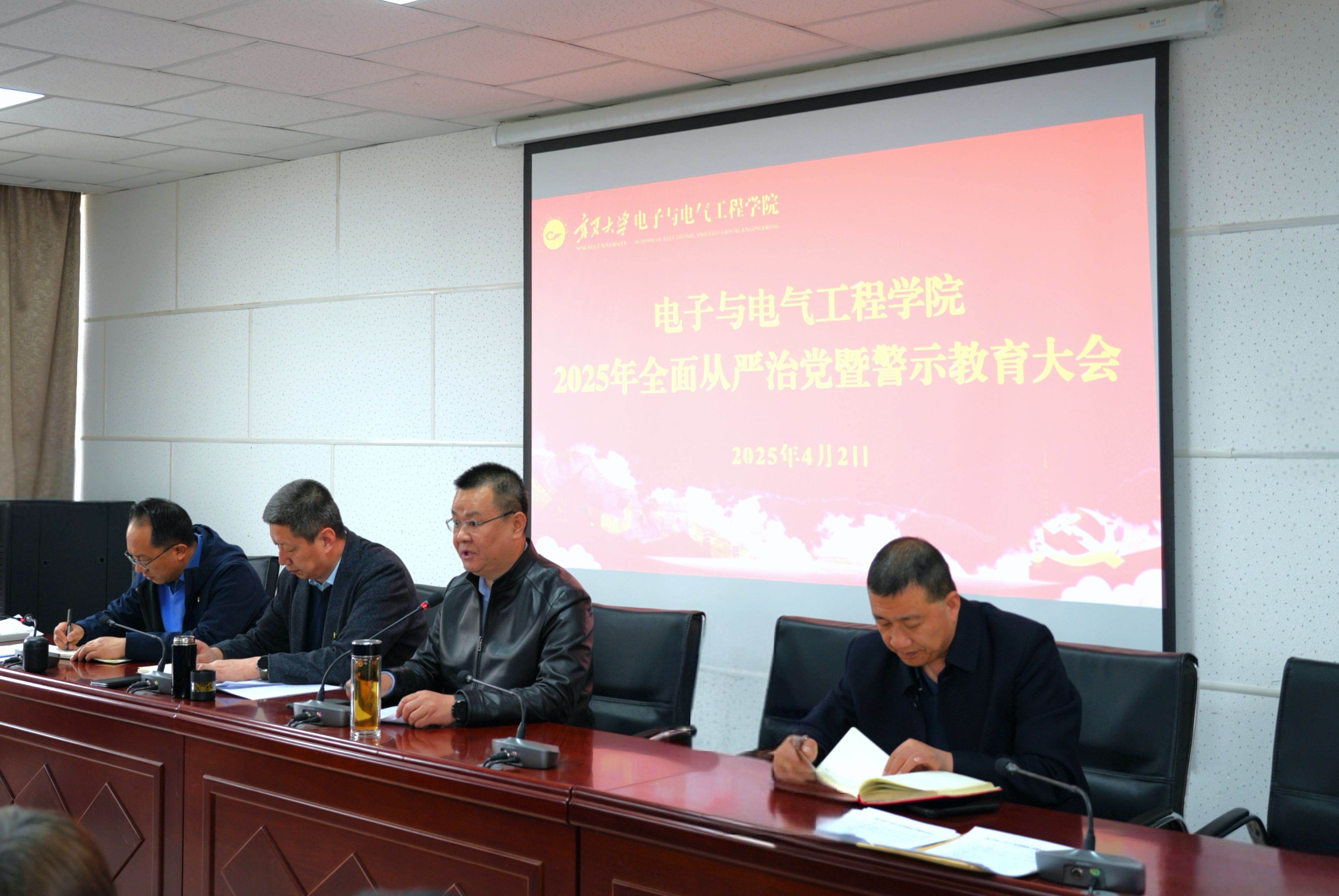 【澳门十大信誉网赌大全新闻中心讯 电子与电气工程学院】为深入学习贯彻习近平总书记关于党的自我革命的重要思想,学习贯彻学校2025年全面从严治党暨警示教育会议精神,落实全面从严治党主体责任,强化师德师风建设,筑牢廉洁从教防线,4月2日下午,电子与电气工程学院召开2025年全面从严治党暨警示教育会议。学院领导班子及全体教师参会,会议由学院党总支书记何彦平主持。会上,院长孙学宏传达学校2025年全面从严治党暨警示教育会议精神。副院长郭中华领学《澳门十大信誉网赌大全教师师德失范行为处理办法》,通报近期学校教师违纪违法典型案例。全院教师集中观看《师德师风警示教育宣传片》。何彦平在讲话中强调,全面从严治党是学院发展的政治保障,师德师风建设是教师队伍建设的灵魂,要进一步强化政治引领,加强党的建设,压实党建责任,推动学科高质量发展。希望全体教师以案为鉴筑牢思想防线,进一步提高政治站位,牢记使命,以教育家精神为引领,厚植教育情怀,始终保持对教...