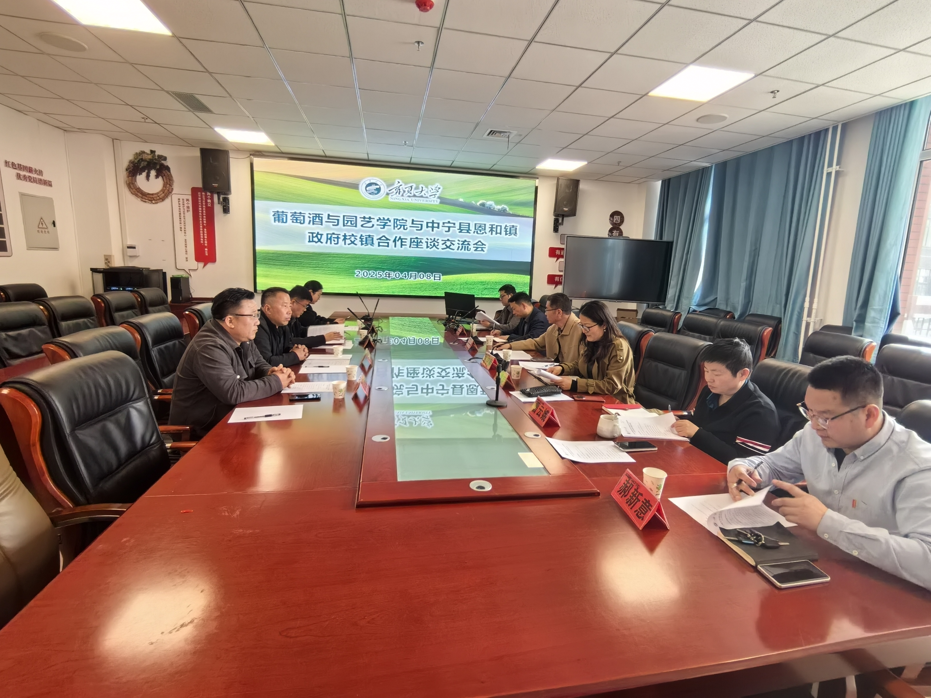 【澳门十大信誉网赌大全新闻中心讯 葡萄酒与园艺学院】为促进乡村振兴战略实施,推动科技成果转化落地,4月8日,中宁县恩和镇党委书记尹向奎、党委副书记兼镇长张磊、党委副书记马伊敏、宁夏壹起嗨番有限公司董事长彭宝君一行人来信誉网赌葡萄酒与园艺学院进行交流座谈并签署了“产学研”合作共建协议。葡萄酒与园艺学院党总支书记苏宇静、副院长徐伟荣及曹云娥、姚文孔及郝新意老师参加了座谈会。会议由副院长张雪艳主持。座谈交流会上,张雪艳...