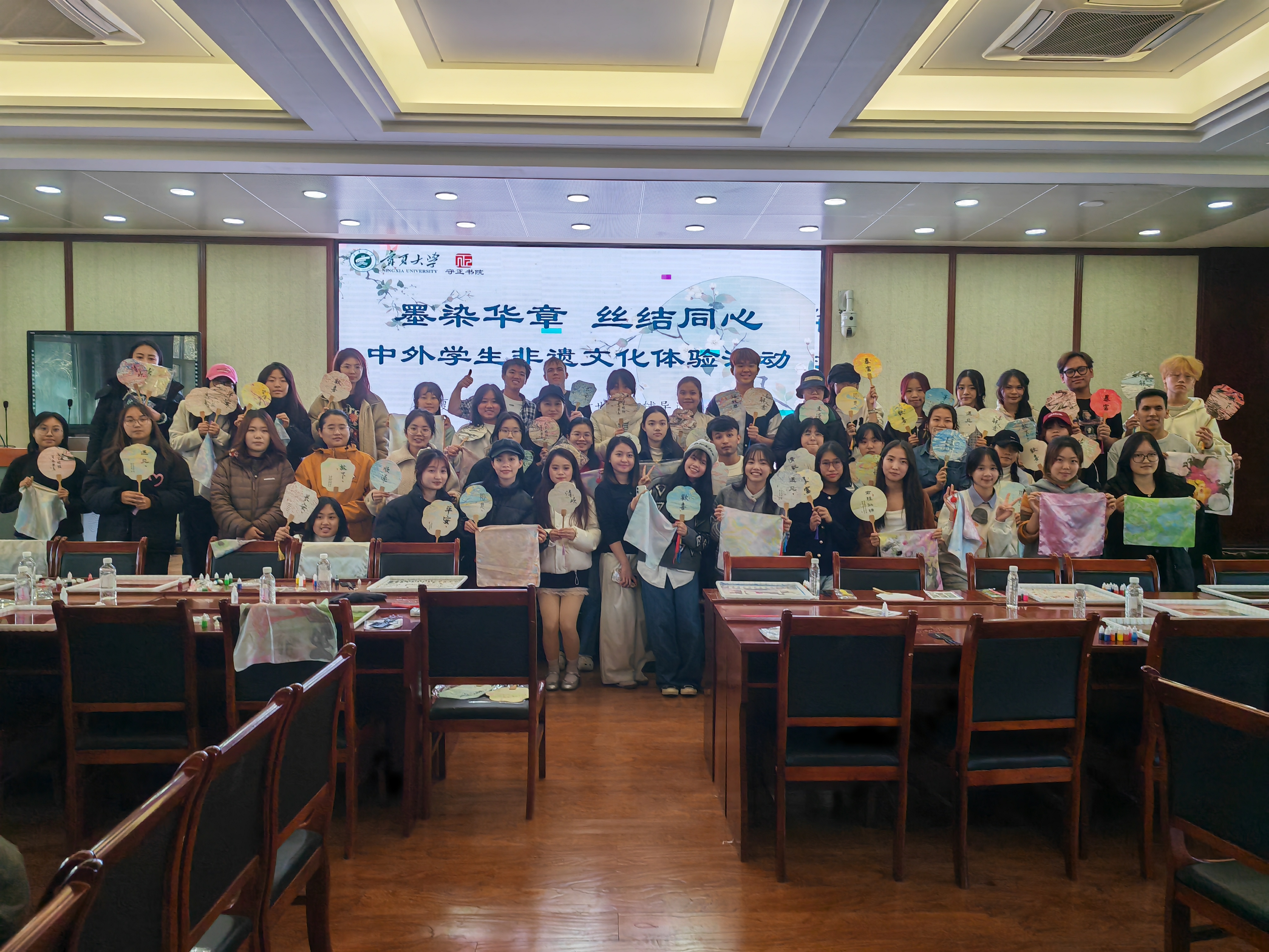 【澳门十大信誉网赌大全新闻中心讯 守正书院】为促进中外学生文化交流,让非遗技艺在青春视角下焕发新活力,11月30日,守正书院组织200余名中外学生在逸夫楼报告厅开展“墨染华章 丝结同心”非遗文化体验活动。中外学子齐聚一堂,在漆扇、水拓丝巾与中国结的创作中,触摸中华传统文化的温度。活动现场,同学们分为三组体验非遗技艺。瓷盘里的颜料随水波舒展,将扇面轻覆其上,再提起时,流动的纹理已定格成独一份的诗意。留学生举着刚完成的...