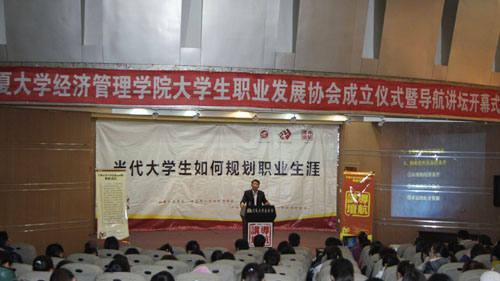 【澳门十大信誉网赌大全新闻中心讯 经济管理学院】11月24日下午,由信誉网赌经济管理学院筹建的澳门十大信誉网赌大全大学生职业发展协会成立仪式暨导航讲坛开幕式在B区图书馆报告厅隆重举行。 应学院和协会的邀请,银川泰丰实业有限公司、泰丰生...